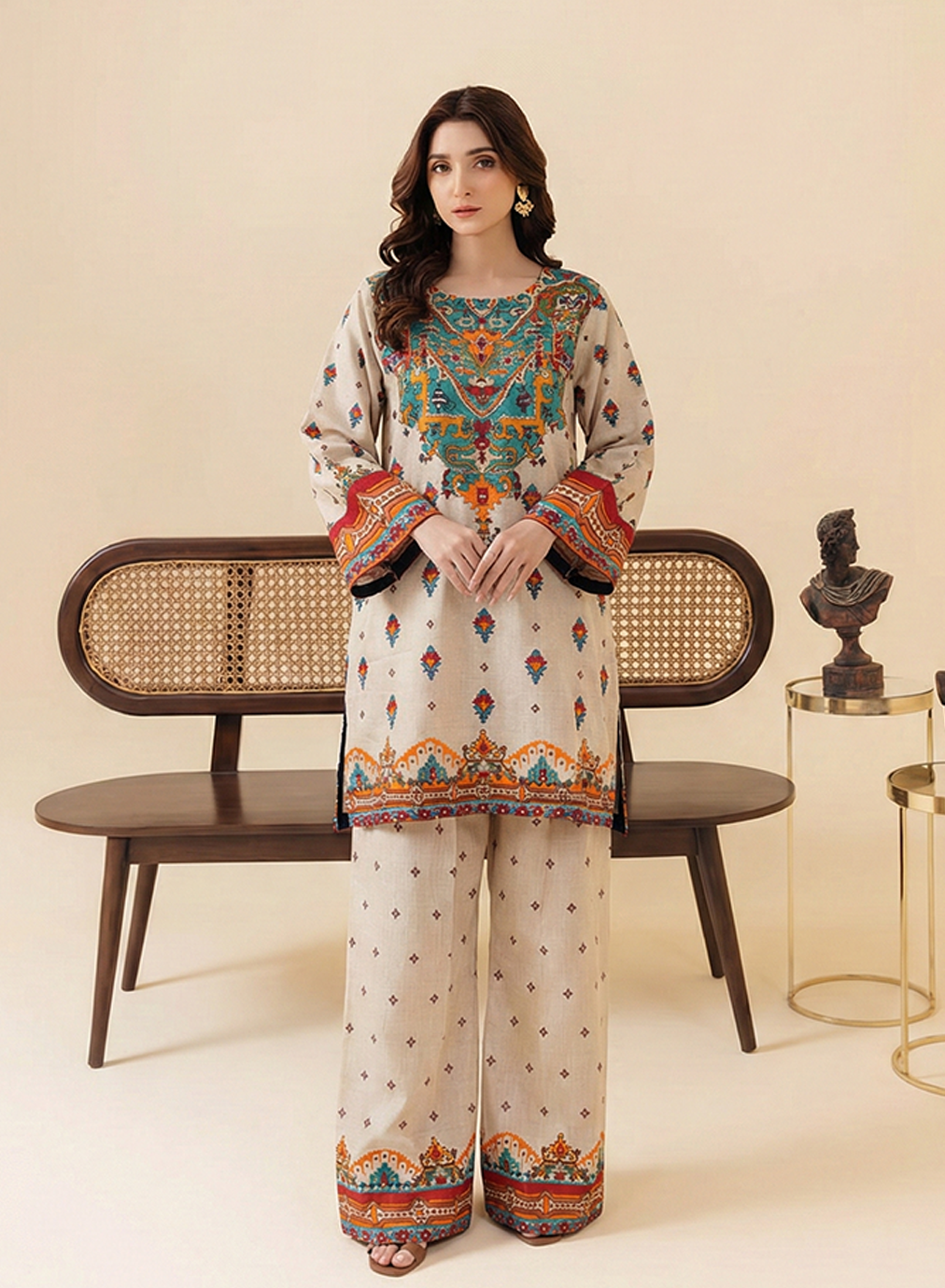 Elevate your daily wardrobe with this sophisticated two-piece ensemble that perfectly blends traditional motifs with modern aesthetics.