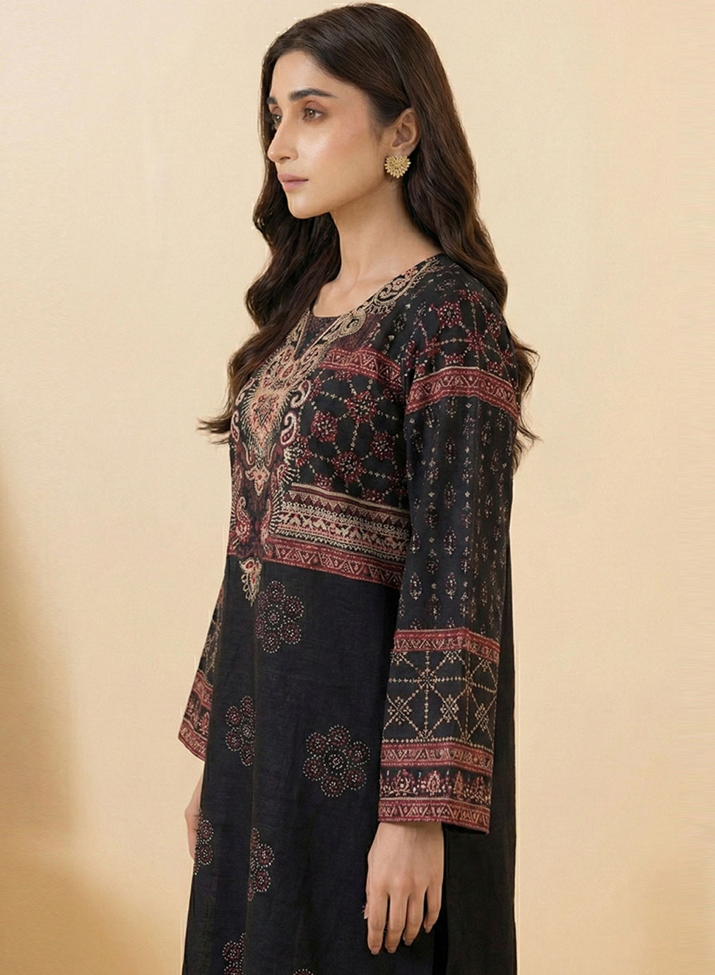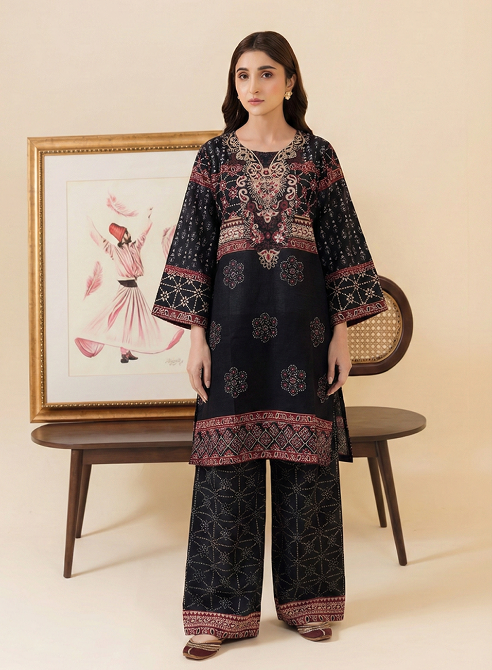 Elevate your daily wardrobe with this sophisticated two-piece ensemble that perfectly blends traditional motifs with modern aesthetics.