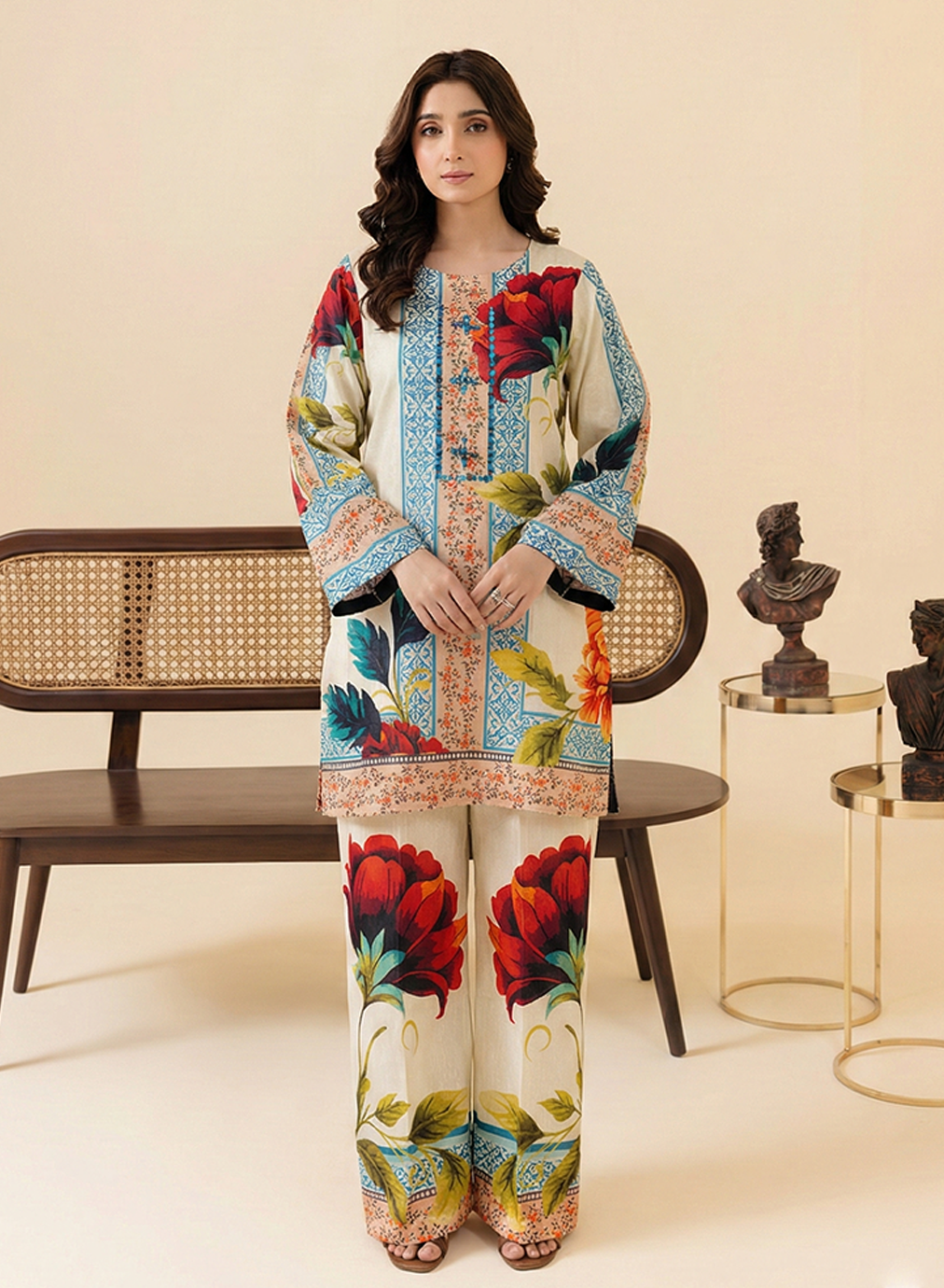 Elevate your daily wardrobe with this sophisticated two-piece ensemble that perfectly blends traditional motifs with modern aesthetics.