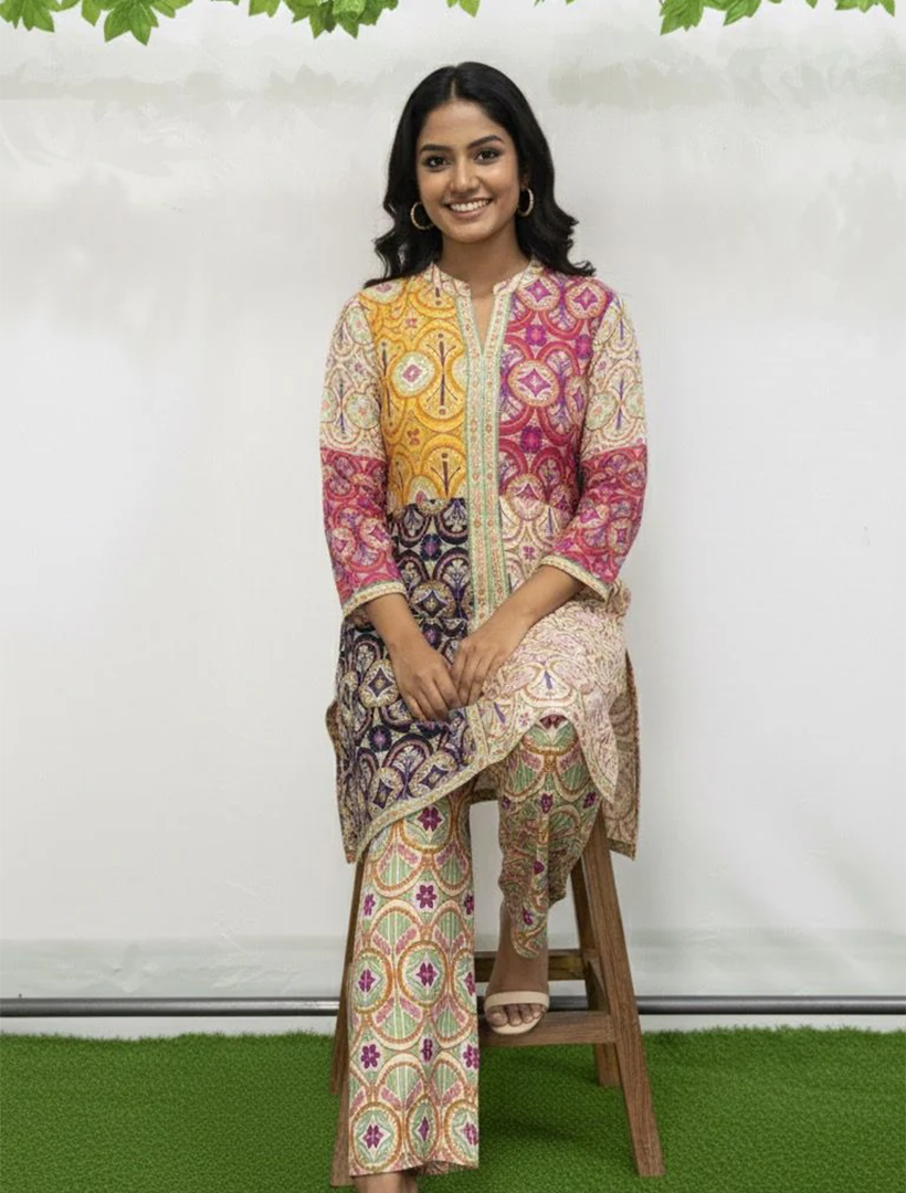 A beautiful 2-piece outfit with bright colors and fun prints. Soft, easy to wear, and perfect for everyday The colorful design gives a cheerful and stylish look for any casual day.